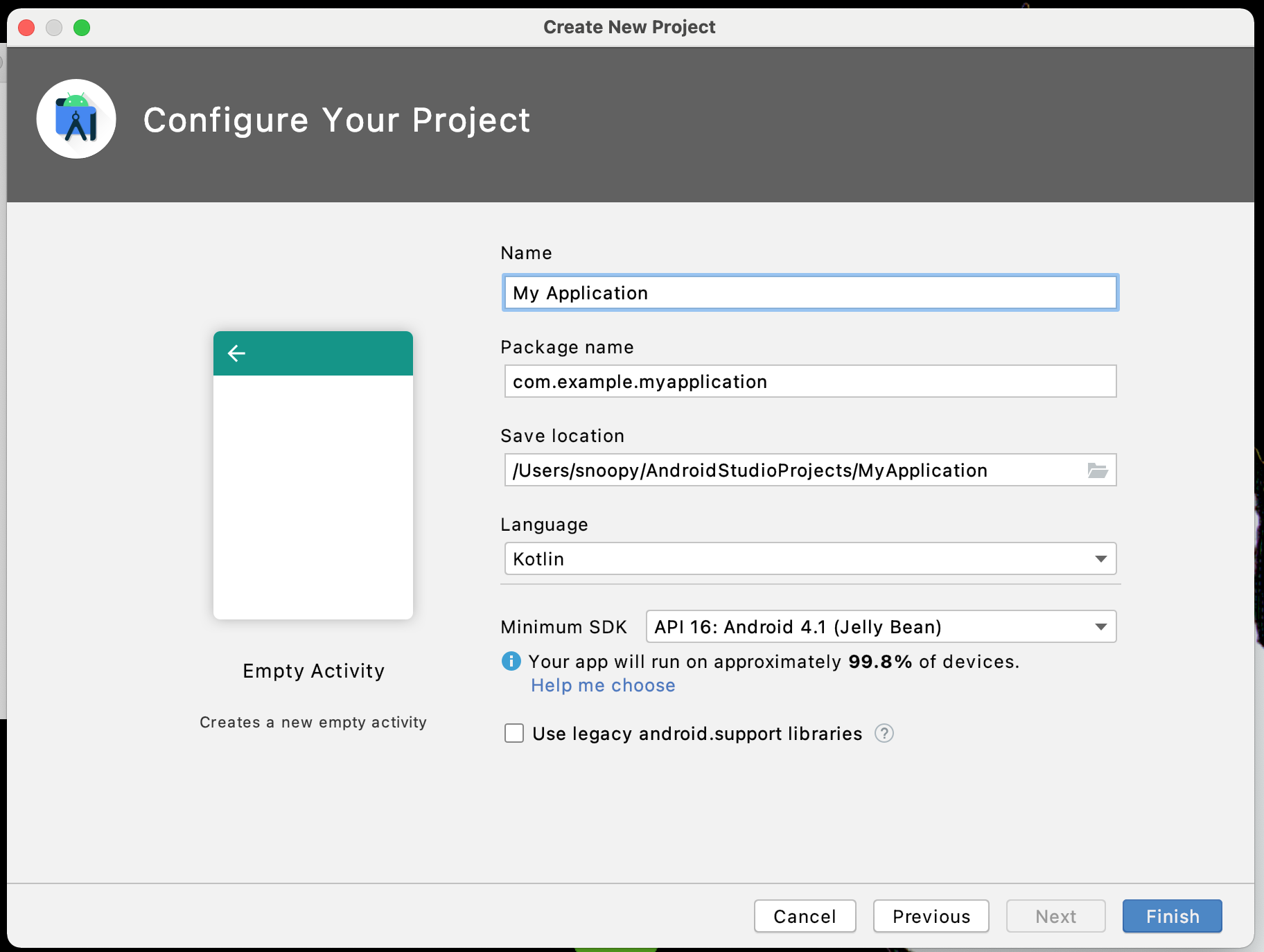And I select the backward compatibility all the way down to API 21 Android 5.0