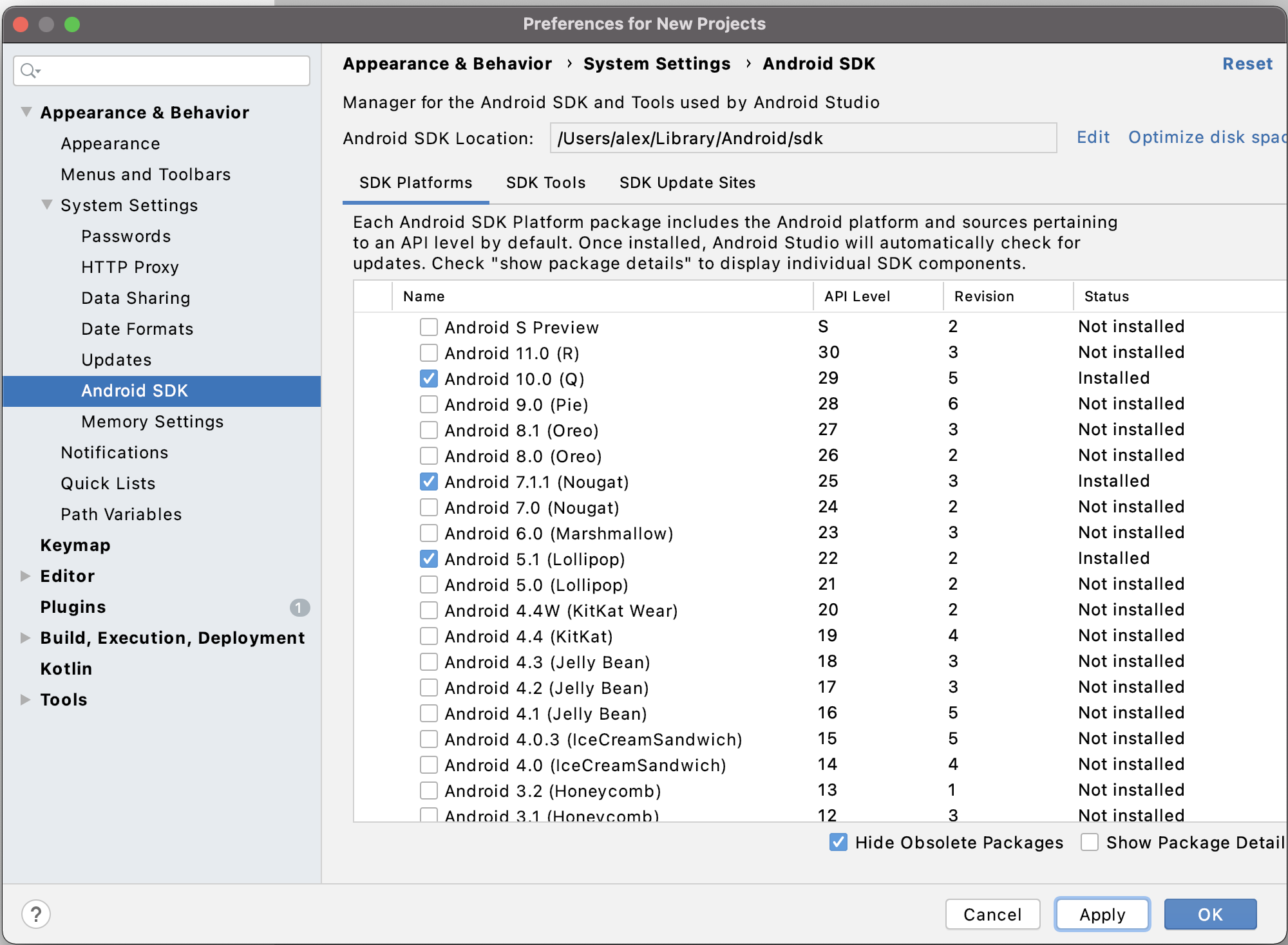 directory ~/Library/Android/sdk/build-tools/30.0.3